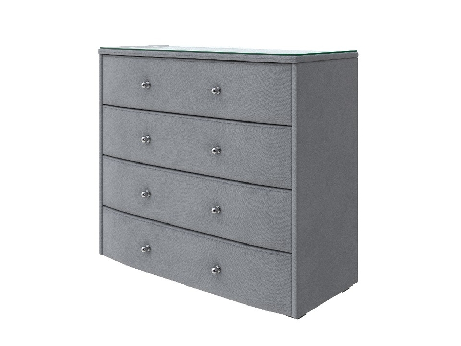 Фасады ящиков и корпус комода обиты мебельной тканью различных типов и расцветок.